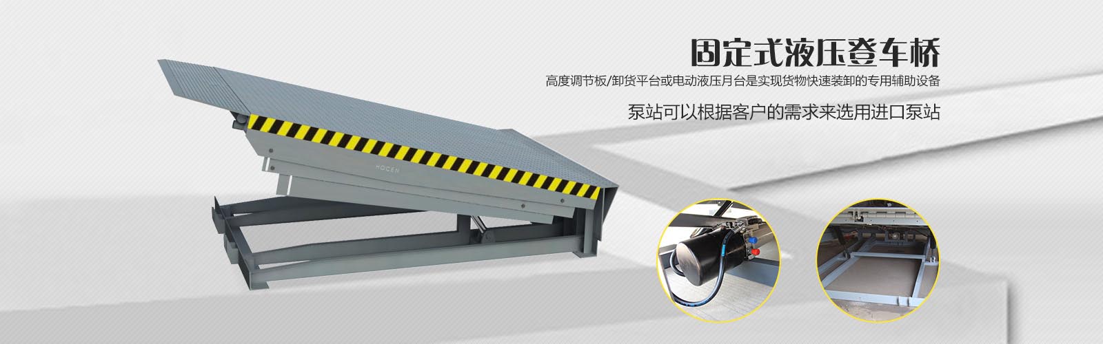 固定式液壓登車(chē)橋是實(shí)現(xiàn)貨物快速裝卸的專(zhuān)用輔助設(shè)備,安裝在月臺(tái)、建筑物上,搭接于貨車(chē)車(chē)廂,調(diào)節(jié)月臺(tái)、建筑物地面與車(chē)廂之間的高度差